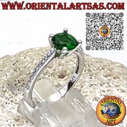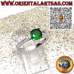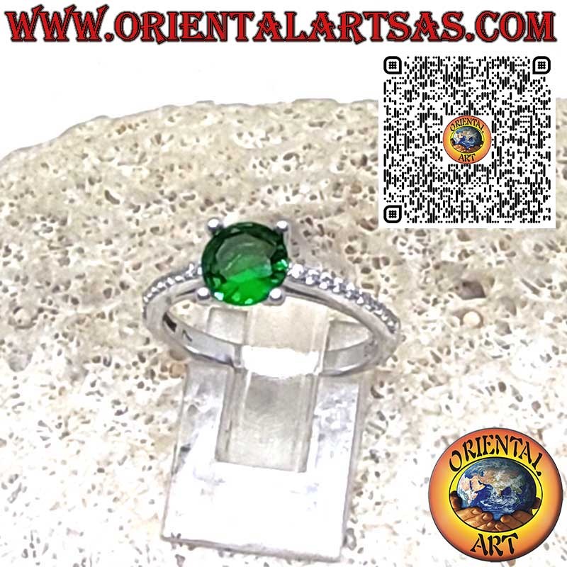 Eleganter 925er Silberring mit synthetischem rundem Smaragd-Solitär und funkelnden seitlichen Zirkonia.