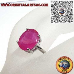 Klassischer Solitärring aus 925er Silber, besetzt mit einem kostbaren Natürlichen Rubin im Ovalschliff. Die Vier-Krappenfassung ist essenziell und funktional, konzipiert, um maximales Licht auf den Edelstein einzufangen und zu reflektieren.