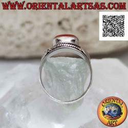 Silberring mit natürlichen Korallen quer und seitlichen Verzierungen (handgefertigt)