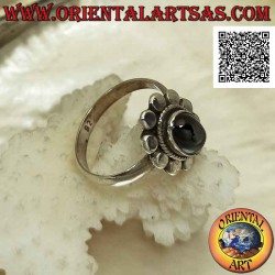 Wir präsentieren ein Schmuckstück von seltener und geheimnisvoller Anmut: ein handgefertigter 925 Silberring, der die Magie der Natur verkörpert. Im Zentrum ein kostbarer ovaler Cabochon Black Star (Stern-Diopsid), der aus Indien stammt. Seine intensive, samtig schwarze Oberfläche wird durch ein außergewöhnliches optisches Asterismus-Phänomen veredelt: ein leuchtender 4-strahliger Stern, der bei Lichtbewegung magisch über die Oberfläche zu schweben scheint und einen hypnotischen, geheimnisvollen Effekt erzeugt.