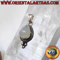 Seltener und bezaubernder 925 Sterlingsilber Anhänger mit einem wunderschönen natürlichen Tropfen-Mondstein von 10x8 mm, gefasst und umgeben von einem raffinierter Silbergeflecht mit drei Perlen an der Basis. Symbol für Intuition, Weiblichkeit und Gelassenheit. Maße 27x10 mm, Gewicht 2,2 Gramm.