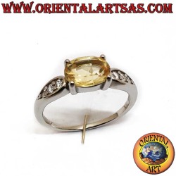 ELEganter rhodinierter 925 Sterlingsilber Ring mit einem natürlichen ovalen Topaz von 6x8 mm diagonal gesetzt, flankiert von zwei brillanten Seiten-Zirkonen. Symbol für Sonnenenergie, Optimismus und geistige Klarheit. Polierte elegante Oberfläche. Gewicht 2,2 Gramm.