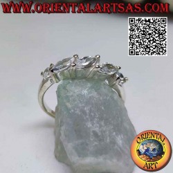 Silberring mit drei weißen Shuttle-Zirkonen, die schräg zwischen zwei runden Zirkonen gesetzt sind