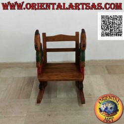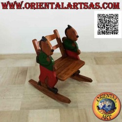 Schöner Schaukelstuhl für Kinder aus massivem Suarholz mit eingraviertem Schüler mit grün bemaltem T-Shirt, beidseitig handgefertigt