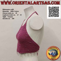 Magenta A-Linie Häkeloberteil mit Perlen und Spiegeln aus handgefertigter Baumwolle (freie Größe)
