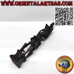 Schöne seltene und alte Ebenholzskulptur einer Öllampe mit drei Männern, die einen sitzenden Mann mit einem Pelikan auf seinen Schultern stützen, der wiederum eine beleuchtete Fledermaus stützt. Diese seltene Skulptur wurde in Borneo von den Dayaks hergestellt. Einzigartiges Einzelstück, das 1985 in West-Bornio von einem lokalen Kunstsammler gekauft wurde.