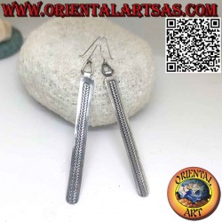 Handgefertigte Ohrringe der amerikanischen Ureinwohner aus 925-‰-Silbergeflecht auf langer Platte, hergestellt von erfahrenen Handwerkern aus massivem 925-‰-Silber, hypoallergen, ohne Nickel. Die Oberfläche ist teilweise brüniert und nicht plattiert, wodurch ihre Schönheit über die Jahre erhalten bleibt