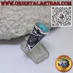 Anillo de plata con turquesa natural de Arizona ovalada y decoración floral en los laterales