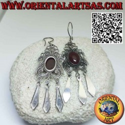 Grandes y largos pendientes de plata de estilo barroco hechos a mano en Indonesia con cornalina ovalada y colgantes, realizados en plata 925 ‰ hipoalergénica por expertos artesanos.