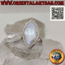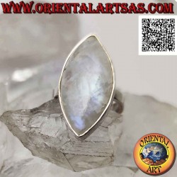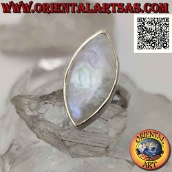 Anillo de plata con piedra lunar arcoíris cabujón ovalado puntiagudo en un marco suave
