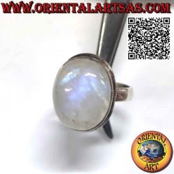 Precioso anillo con una gran piedra lunar arcoíris ovalada en un engaste sencillo en plata 925 ‰ hipoalergénica. La superficie está parcialmente bruñida para resaltar la mano de obra y garantizar su belleza a lo largo de los años. (el anillo no está tratado ni chapado sino en plata maciza)