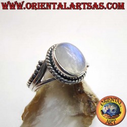 Elegante anillo de Plata 925 con una gema ovalada de Piedra Luna Arcoíris (8x10 mm). La piedra de la intuición y el Divino Femenino ofrece una espectacular iridiscencia azul. Perfecta para cualquier ocasión.