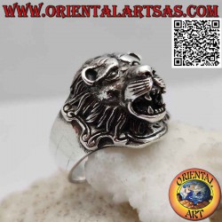 Anillo de plata, escudo con cabeza de león en alto relieve acabado en detalle