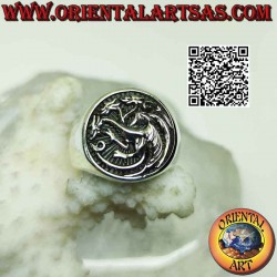 La Casa Targaryen es una casa noble perteneciente al mundo de la saga de fantasía Juego de Tronos de George R. R. Martin. Su escudo de armas es un dragón rojo de tres cabezas sobre fondo negro; Se dice que el dragón de tres cabezas representa simbólicamente a Aegon I y sus hermanas. El lema oficial de la dinastía Targaryen es en inglés "Fire and Blood" en italiano "Fuoco e Sangue". Joya en plata 925 ‰ hipoalergénica. La superficie está parcialmente bruñida y no está tratada ni chapada por lo que garantiza su belleza a lo largo de los años.
