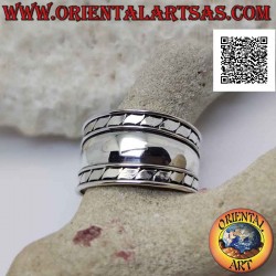 Anillo de plata de banda ancha con líneas oblicuas paralelas grabadas en los lados, Bali