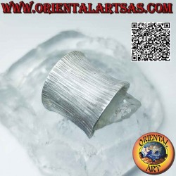 Anillo ancho cóncavo de plata con líneas grabadas a mano en vertical (Karen), ajustable