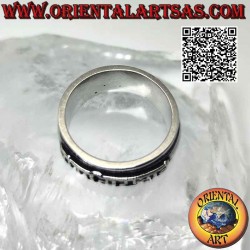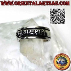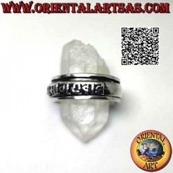 Anillo de plata con banda lisa antiestrés con mantra tibetano "OM MANI PADME HUM" en relieve