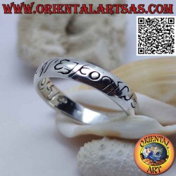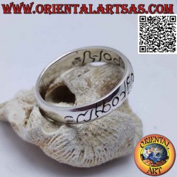 Anillo de plata con banda lisa redondeada con escrituras élficas grabadas