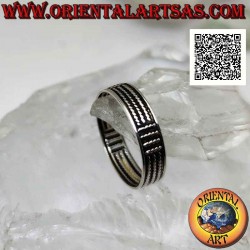 Anillo de plata con banda labrada con decoración alterada de tres líneas verticales y horizontales en bajorrelieve