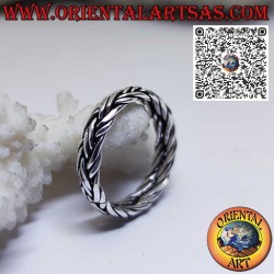 Anillo de plata con un par de alambres trenzados de 5 mm. de ancho, de plata maciza hipoalergénica 925 ‰. La superficie está parcialmente bruñida para resaltar la elaboración y garantizar su belleza a lo largo de los años. No contiene níquel