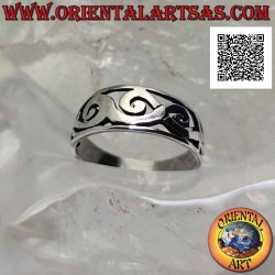 Anillo de plata con banda lisa trabajada, entrelazado de dragones perforados estilizados