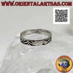 Anillo de plata con banda trabajada, motivo de líneas discontinuas entre triángulos en bajorrelieve