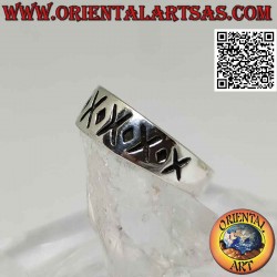 Anillo de plata con banda en forma de media luna con una X grabada y un punto alternados