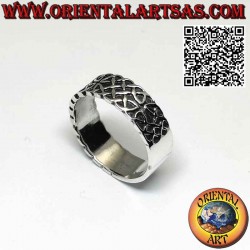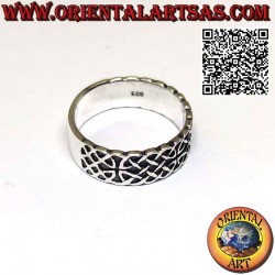 Hermoso anillo de banda ancha con doble nudo celta en alto relieve, plata 925 ‰ hipoalergénica. La superficie está parcialmente bruñida para resaltar la mano de obra y garantizar su belleza a lo largo de los años. (el anillo no está tratado ni chapado sino en plata maciza)