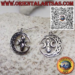Hermosos pendientes artesanales en plata de ley 925 con la Diosa Madre Tierra Wicca dentro de la luna celta.
