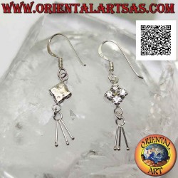 Pendientes de palanca de plata con rombo de circonita blanca y tres segmentos colgantes