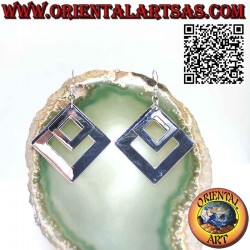 Hermosos y elegantes colgantes con 2 cuadrados superpuestos movibles brillantes y perforados brillantes, hechos de plata 925 ‰ hipoalergénica. (Los pendientes no están tratados ni chapados sino en plata maciza) Sin níquel