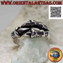 Anillo de plata en forma de tres garras de dragón envueltas en un fuerte agarre