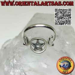 Anillo de plata lisa con símbolo de triple luna diosa wicca (pentáculo perforado)
