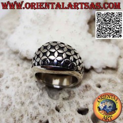 Anillo de plata con banda redondeada con una serie de flores de cuatro pétalos en bajorrelieve