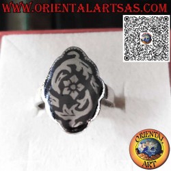 Resultado: Una joya elegante y atemporal, con detalles florales en negro sobre plata brillante – cada anillo es único y hecho completamente a mano.