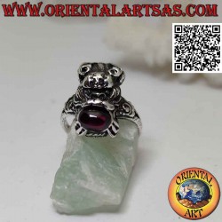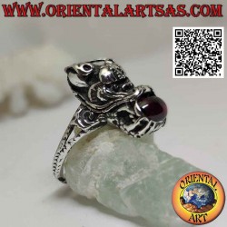 Anillo de plata con forma de dragón nepalí con granate ovalado natural en la boca