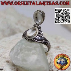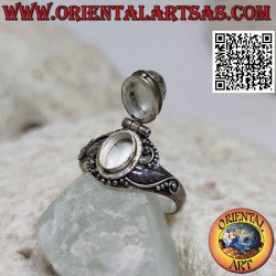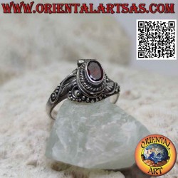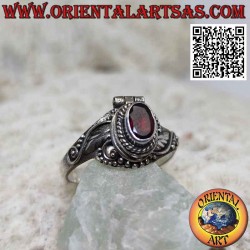 Anillo caja de plata - soporte de veneno con granate ovalado y adornos sinuosos