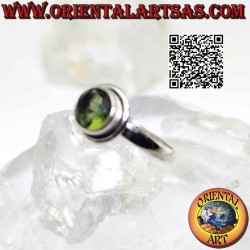 Anillo de plata con un peridoto redondo facetado en relieve con un borde saliente liso