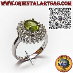 Anillo de Plata 925 con Peridoto Natural Ovalado Rodeado de Doble Fila de Circonitas