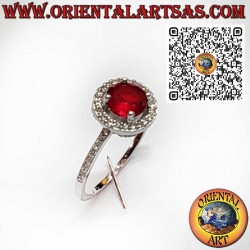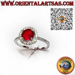Anillo de Plata 925 con Granate Redondo y Circonitas Blancas