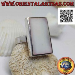 Anillo de plata con nácar rectangular al ras con el borde en una banda lisa