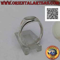 Anillo de plata lisa ligeramente redondeada con nácar redondo a ras de borbo 8 Ø