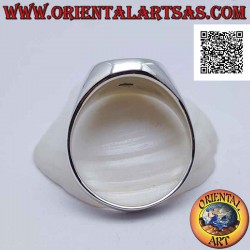 Anillo de plata lisa con yin yang de nácar y ónix en el círculo ligeramente ovalado
