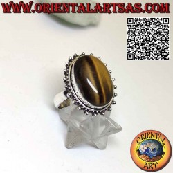 Anillo de plata con ojo de tigre ovalado plano rodeado de trastes