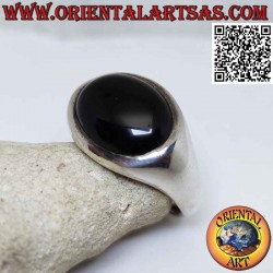 Anillo de plata lisa con ónix horizontal cabujón en relieve