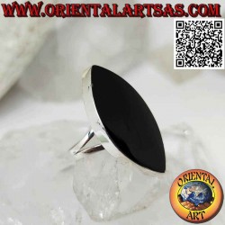 Anillo de plata con ónix elíptico puntiagudo con borde liso (lanzadera)