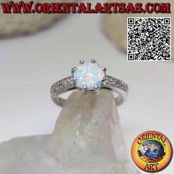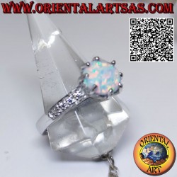 Charm etéreo con el anillo de plata. Conjunto central de ópalo rosa, rodeado de circonitas laterales. Una elegancia radiante y atemporal