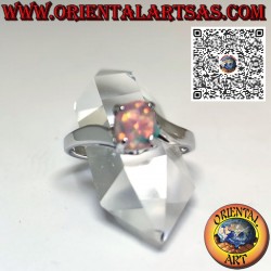 Encanto etéreo con el anillo de plata con ópalo ovalado de arlequín engastado en un marco simple pero asimétrico. Una elegancia radiante y atemporal, elaborada con plata 925 hipoalergénica sólida sin níquel.