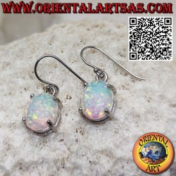 Pendientes de plata con ópalo arlequín ovalado engastado en puntas
