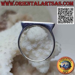 Anillo de plata liso estrecho con rectángulo estrecho elevado y agrandado